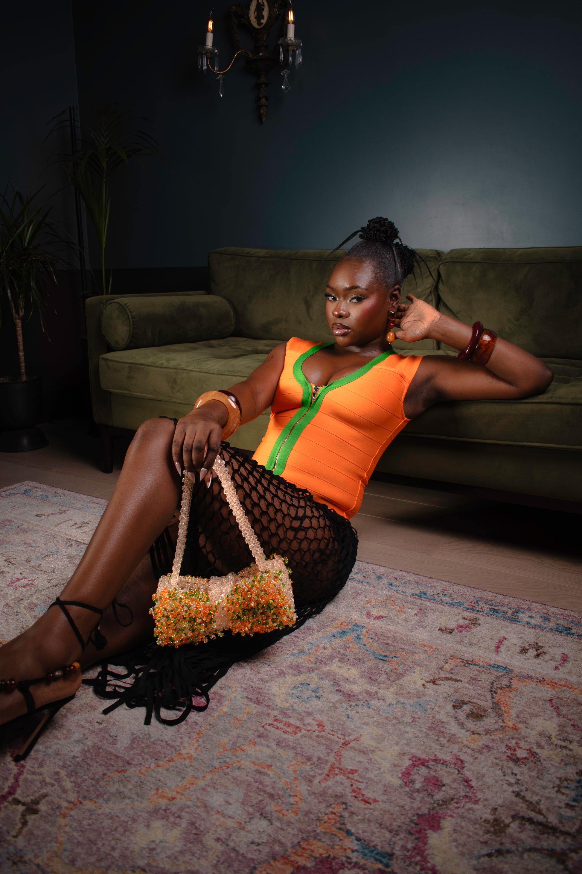 The Ara Bag is inspired by the body of a talking drum, its curves echoing the hourglass of a woman’s body.